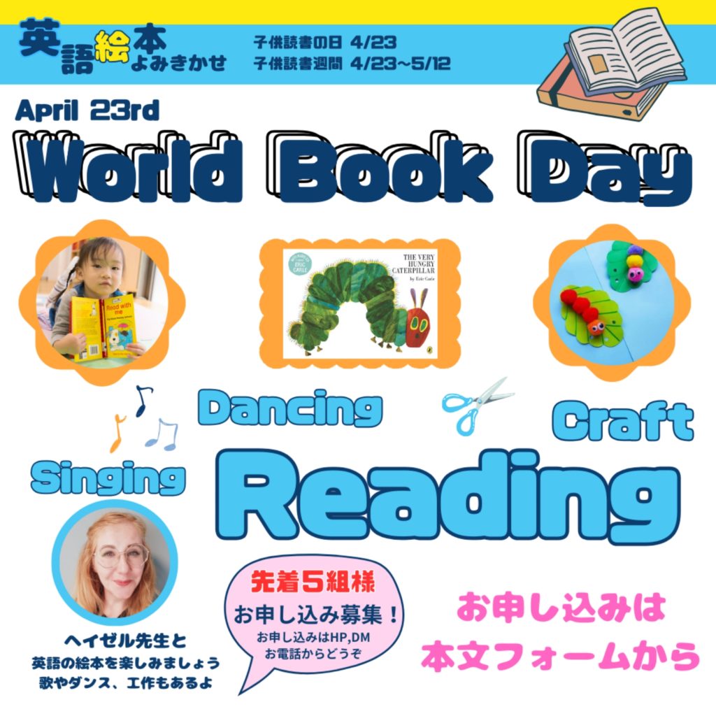 コルトスインターナショナルスクールでは4/23(火)子供読書の日に英語絵本読み聞かせイベントを開催いたします